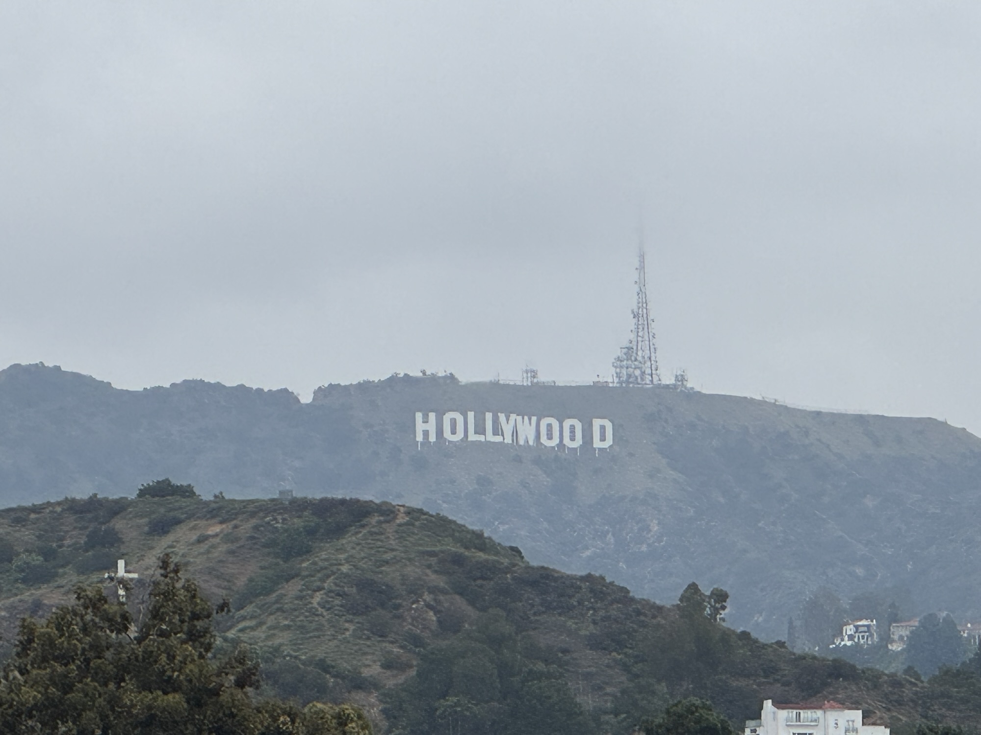 Heute ist der Wurm drin 🙈 Eigentlich war das Wetter wieder besser gemeldet – war wohl nichts: max. 15 Grad und Regen. Hilft alles nichts, ab in den offenen Hop-on Hop-off Bus mit unserer Idee dahinter mit der 2. Linie bis zum Strand zu fahren. Nachdem die Busse dort nur stündlich fahren und wir am Strand letztendlich nur eine Stunde gehabt hätten, haben wir das dann in Beverly Hills wieder verworfen. Wir sind dann am Farmers-Market und einem Einkaufszentrum nochmal ausgestiegen und haben dort die Zeit verbummelt. Eigentlich super schön und neu angelegte Stadtteile, nur leider war die Laune nicht die Beste. Zumindest am Aussichtspunkt vom „Hollywood“-Zeichen hatte es kurz mal aufgehört zu regnen und man hat die Berge gesehen. Nachdem dann auch noch der Parkautomat am Observatorium unsere Karten nicht wollte haben wir uns ins Hotel verkrümelt 😄 Gestern haben wir vom Zimmer aus die Hills rund um LA gesehen, jetzt sehen wir gerade so die andere Straßenseite 🙈 Dann genießen wir eben eine Pizza am Zimmer und den warmen Whirlpool im Regen – hat auch was Schönes!