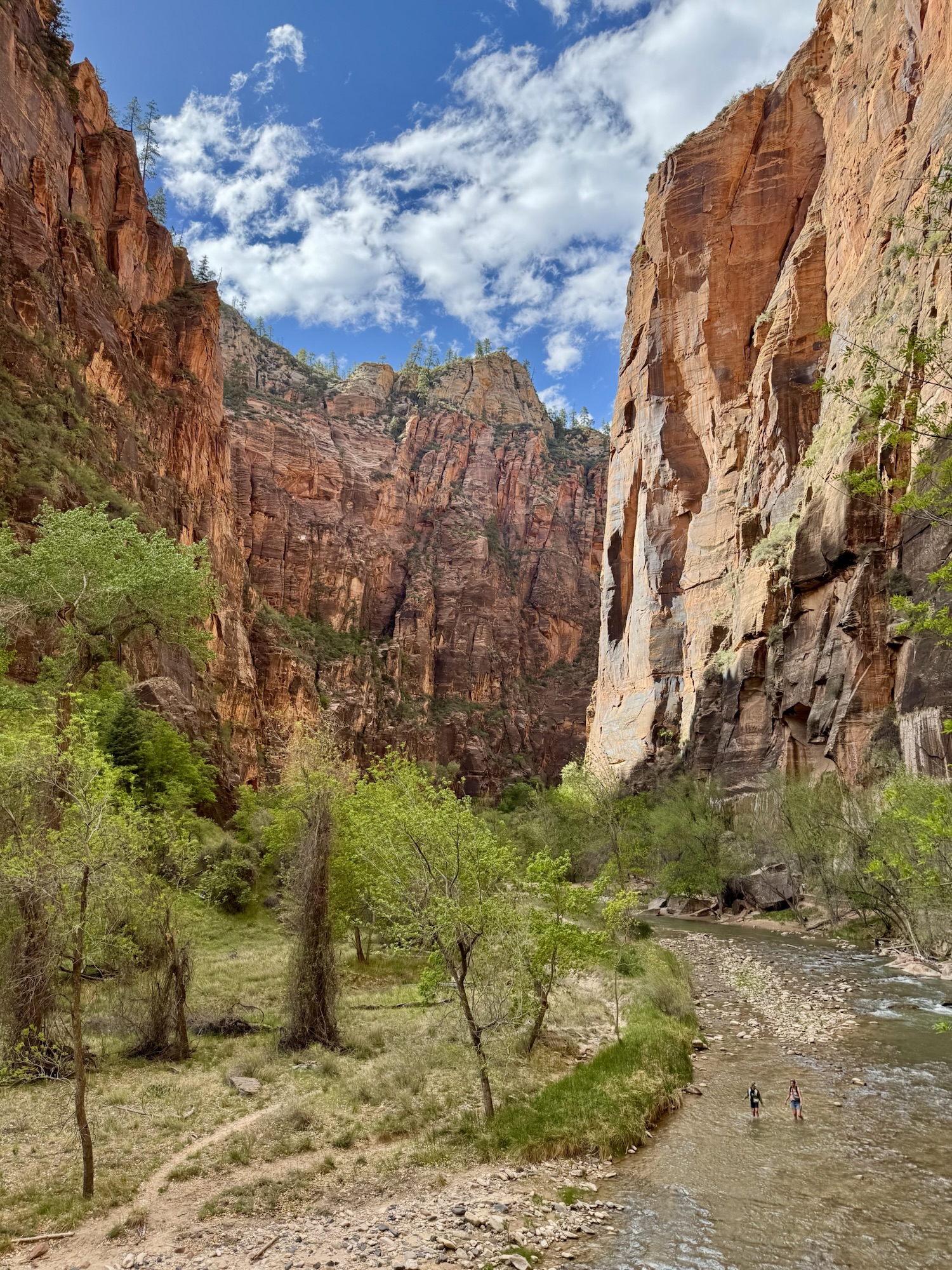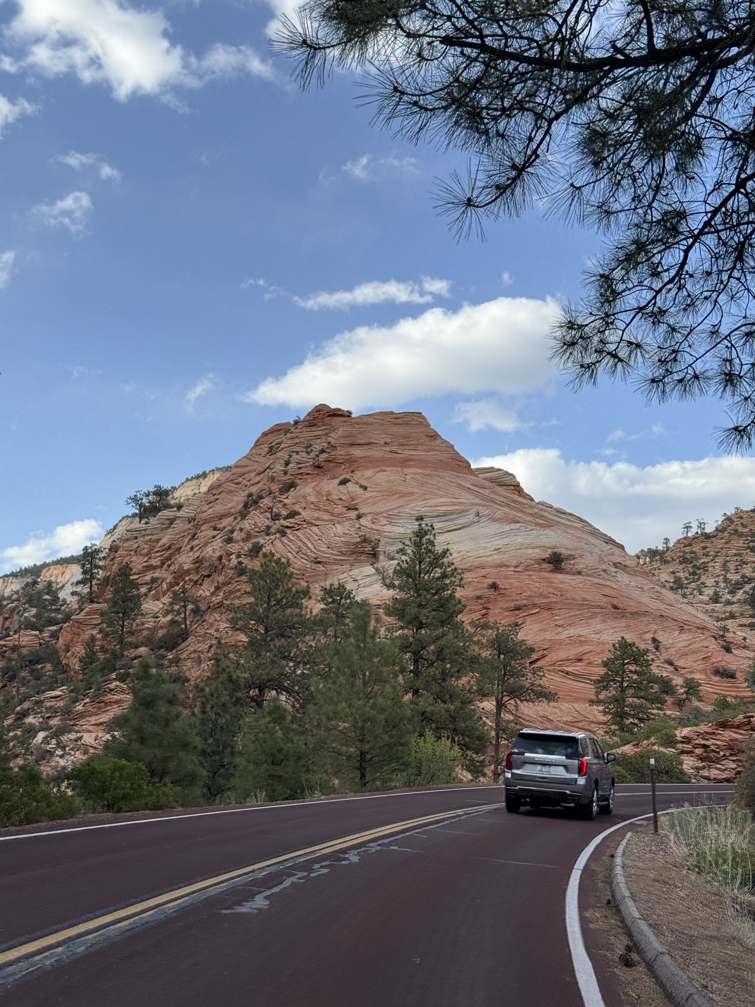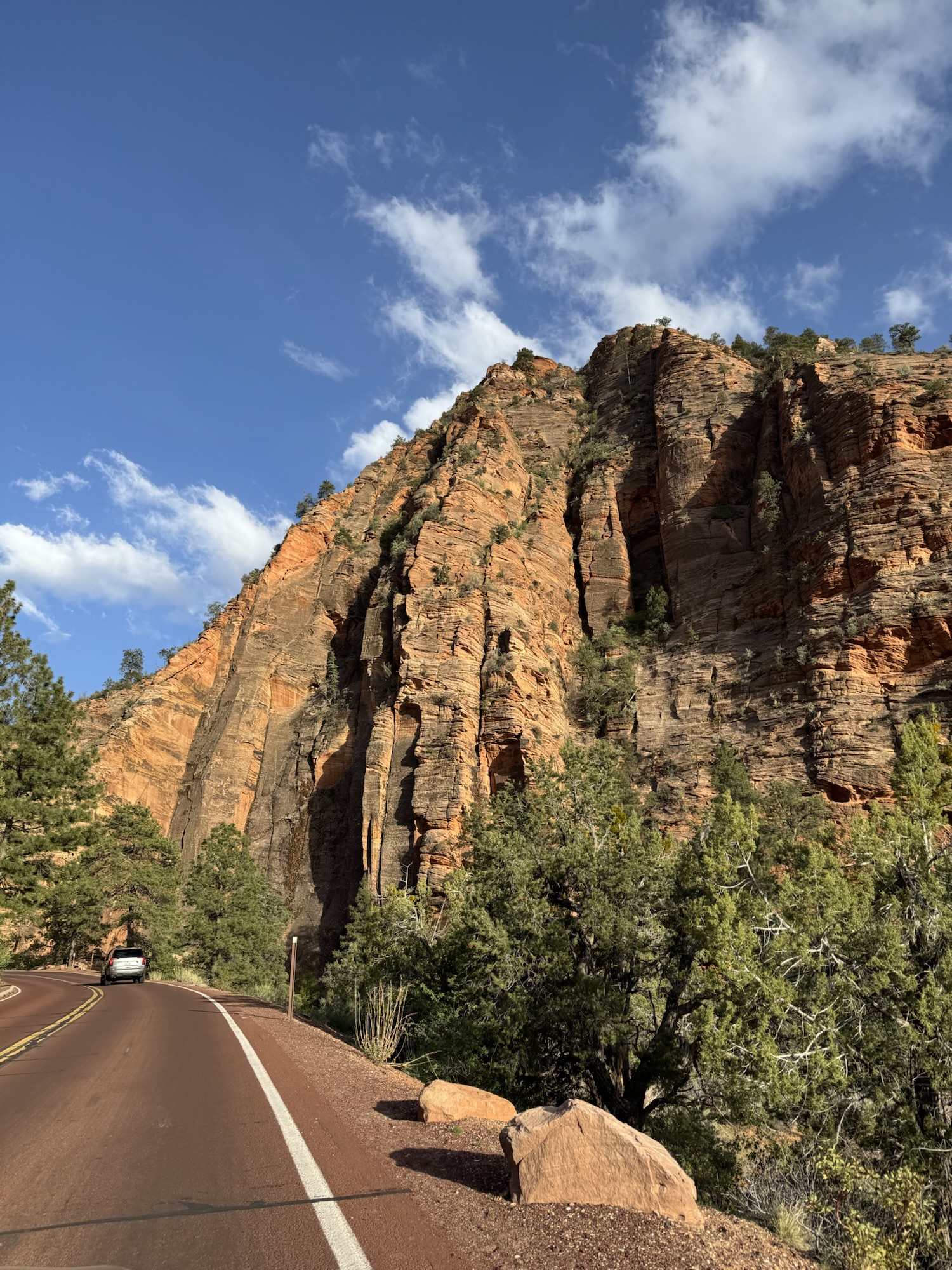 Leider fehlen uns geplante zwei Stunden, die wir hier echt richtig gut hätten gebrauchen können …. Die Natur ist der absolute Wahnsinn! So unfassbar schön, diese extremen Farben zwischen roten Felsen und Baumgrün 🤩 Aber es hilft alles nichts, durch eine Stunde Zeitverschiebung (die wir nicht am Schirm hatten) ist es dann schon nach 18 Uhr bis wir wieder am Auto sind. Die Fahrt durch den Park auf die andere Seite lässt mich aus dem Staunen kaum rauskommen.
