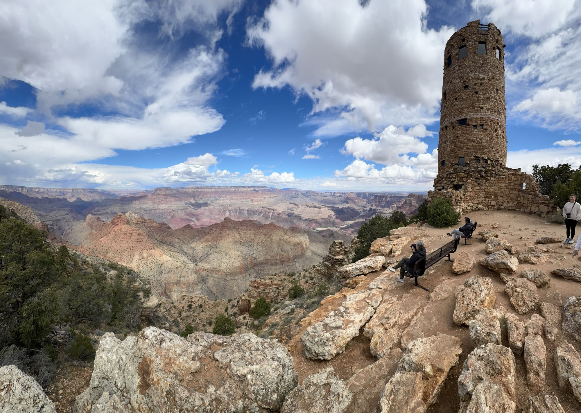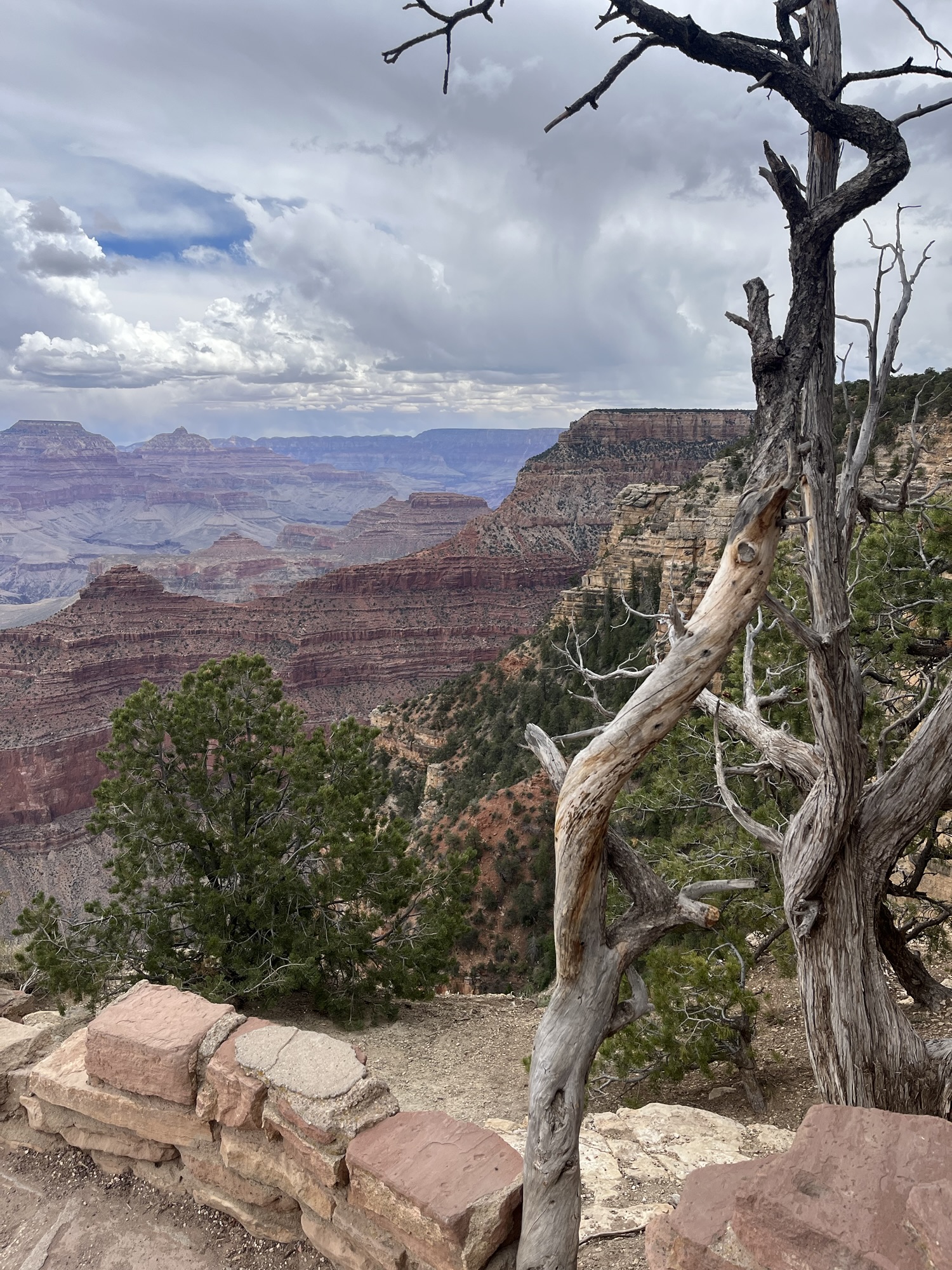 Am Grand Canyon angekommen graupelt und donnert es und der Wind ist wirklich eiskalt. Wir entscheiden uns daher nur für einen kurzen Walk entlang an der Klippen des South Rim, auch wieder sehr beeindruckend.